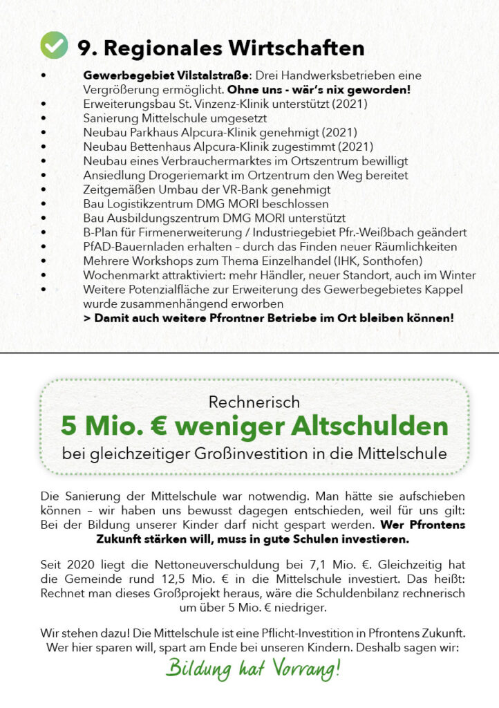 Ergebnisse die man sieht – 6 Jahre Pfrontner Liste