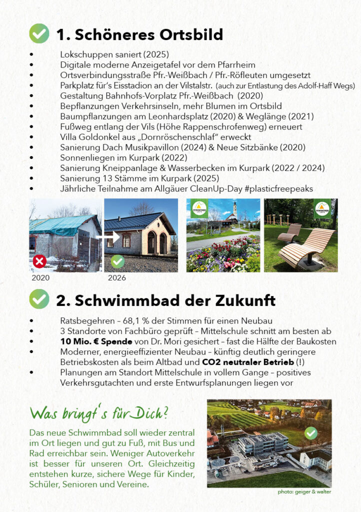 An dieser Stelle möchten wir nun gerne detailliert darauf eingehen, was wir uns bei der letzten Kommunalwahl 2020 für Pfronten gemeinsam vorgenommen – versprochen – haben. In Anlehnung an die 13 Ortsteile hieß es damals